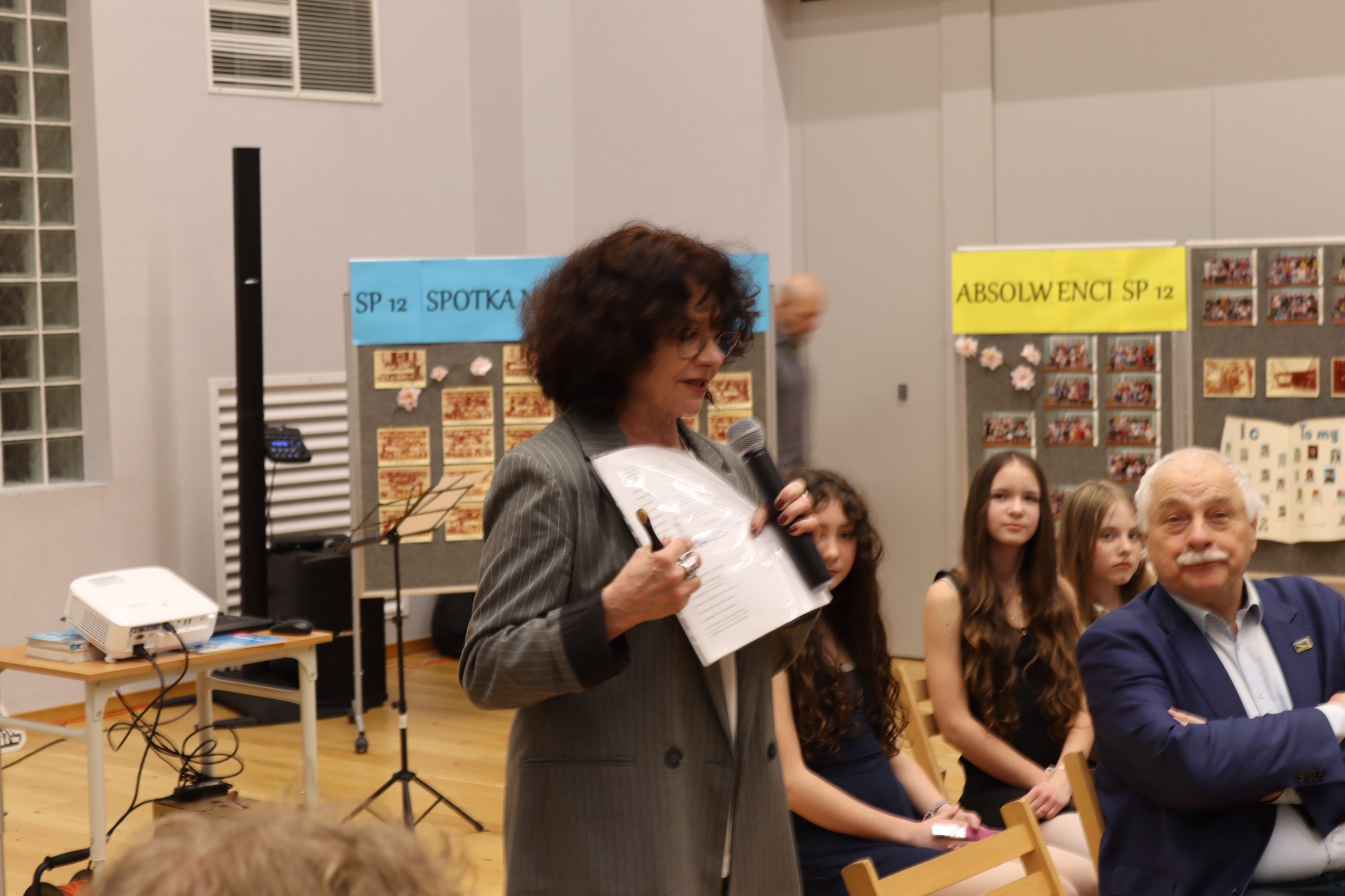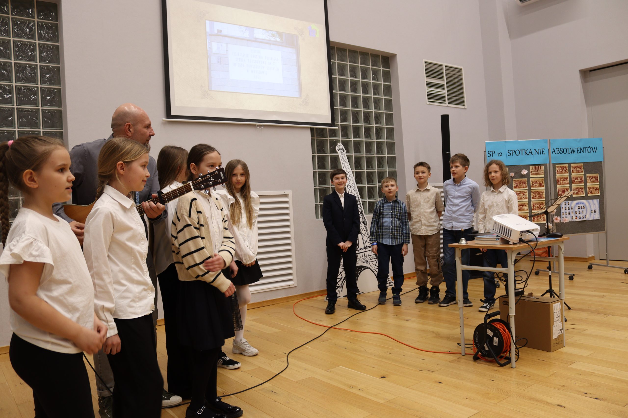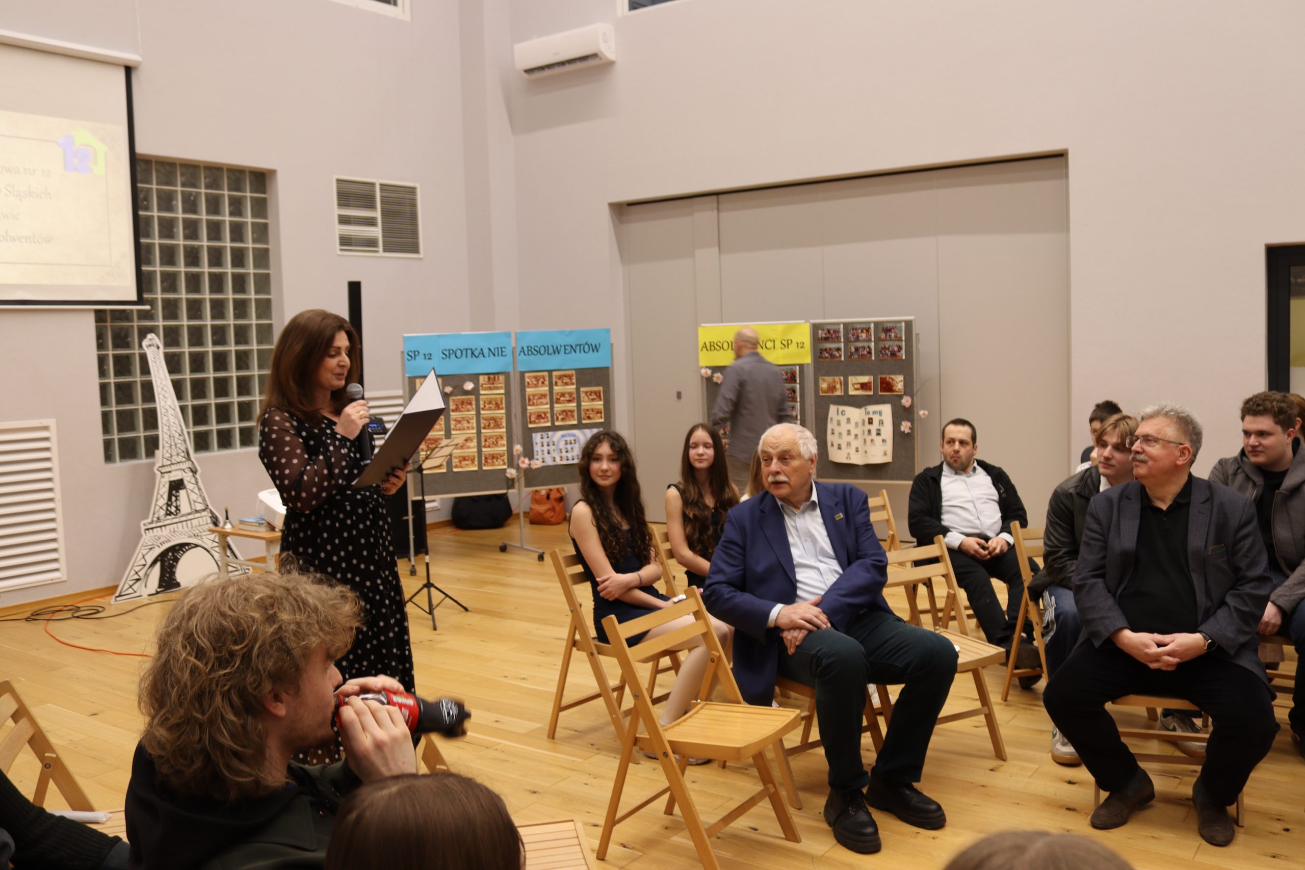 Na zorganizowanym w naszej szkole spotkaniu absolwentów w dniu 26 marca 2026 roku pojawili się reprezentanci wielu generacji. Byli ci najstarsi i ci całkiem niedawni. Z zainteresowaniem i nieskrywanym wzruszeniem oglądali zdjęcia klasowe z dawnych lat i dokumenty przygotowane przez panią Iwonę Stępniak, poprzednią długoletnią dyrektorkę szkoły. Kroniki szkolne i klasowe, albumy i wiele pamiątek z przeszłości. Pani Paula Bogusiewicz-Wołosz, obecna dyrektorka szkoły, przywitała wszystkich obecnych bardzo serdecznie, ponieważ w roku jubileuszu szkoły ich wspomnienia stanowią cenny wkład w dzieło podsumowania tych osiemdziesięciu pracowitych lat. Przedstawiony gościom materiał przygotowany przez pana Grzegorza Kulasa i omawiany przez panią Iwonę Stępniak przybliżył wszystkim zebranym historię szkoły, a przede wszystkim uświadomił im ogromne przemiany, jakich doświadczył budynek, dzięki nieustannym staraniom jego gospodarzy. Zabrzmiały śląskie piosenki w wykonaniu uczniów i uczennic z klasy 3b i 6a. pod opieką pani Klaudii Korzeń z zawsze ciekawym akompaniamentem gitarowym pana Sławka Burakowskiego. Nad organizacją wydarzenia czuwały również pani wicedyrektorka Ewa Wawrzyniak i kierowniczka szkolnej świetlicy pani Agnieszka Bomba. Prowadząca spotkanie Ewa Kabsa zwracała się do zebranych z pytaniami o sens pamiętania o przeszłości ludzi i miejsc, o więzy łączące dawnych uczniów z ich szkołą. Uczennice klasy szóstej pytały o różnice pomiędzy szkołą sprzed lat i obecną. Po oficjalnym zakończeniu spotkania, jego uczestnicy długo jeszcze przeglądali przygotowane materiały archiwalne, wpisywali się do księgi pamiątkowej i prowadzili rozmowy między sobą o czasie minionym i teraźniejszości.
